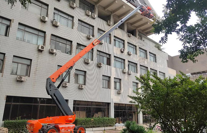 伸縮臂高空車載人高空作業現場