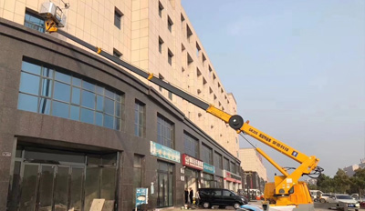• 17.5米伸縮臂登高車酒店開業外墻高空作業施工現場